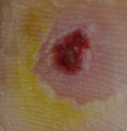 Ilustración 1 Verruga plantar antes del tratamiento de aspecto superficial |