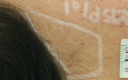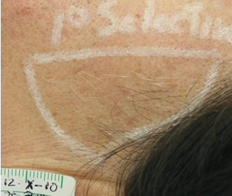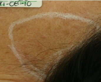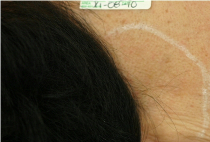 Ilustración SEQ Ilustración \* ARABIC 4 Patilla izquierda. Reducción del 76% a los 26 días posterior a la depilación |