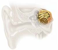 El implante coclear, u " oído biónico ", es una maravilla tecnológica. Es el único procedimiento medico capaz de restaurar parcialmente un sentido humano: la audición. Todos los implantes cocleares tienen componentes básicos en común: Un receptor se aloja en el hueso temporal por debajo de la piel detrás del oído. Un conjunto de electrodos se coloca en el oído interno en la escala media, donde las células sensoriales se hayan dañado o perdido |