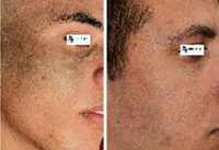Ilustración 3 Nevus de Ota 12 sesiones en un periodo de 10 años. Solo 10 casos han sido reportados de malignización, este tipo de lunares disponen el pigmento muy cerca a las células que lo producen y por esto pueden ser tratados con láseres de pulso ultracorto