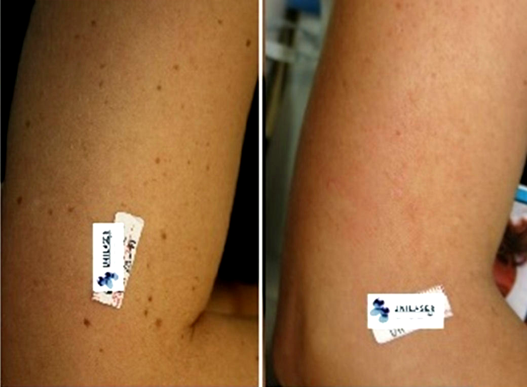 Lunares superficiales en zonas de piel gruesa: Los lunares pediculados de la espalda son superficiales. Si se intervienen con cirugía quedan cicatrices más grandes que se dilatan con los pocos meses después. Si se opta por un afeitado con bisturí no se garantiza remociones completas debido a que el sangrado y su control con radiocirugía deja el lecho de otro color lo cual impide ver pequeños focos más profundos. El láser puede remover zonas de pigmentación residual muy pequeñas.