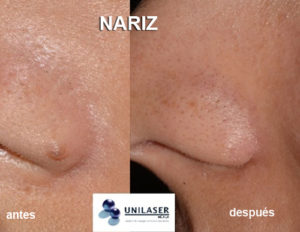 La técnica de vaporización se hace para lesiones de poca elevación o planas, se vaporizan capas del lunar hasta llegar a la dermis .