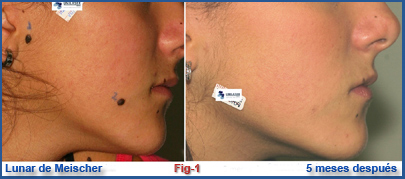 La cauterización de lunares realizada con equipos de electro o crío cirugía no permite ver en el intraoperatorio, la profundidad real del lunar. El láser de dióxido de carbono y el de Erbio-YAG controlan el sangrado lo cual permite ver la extensión del lunar.