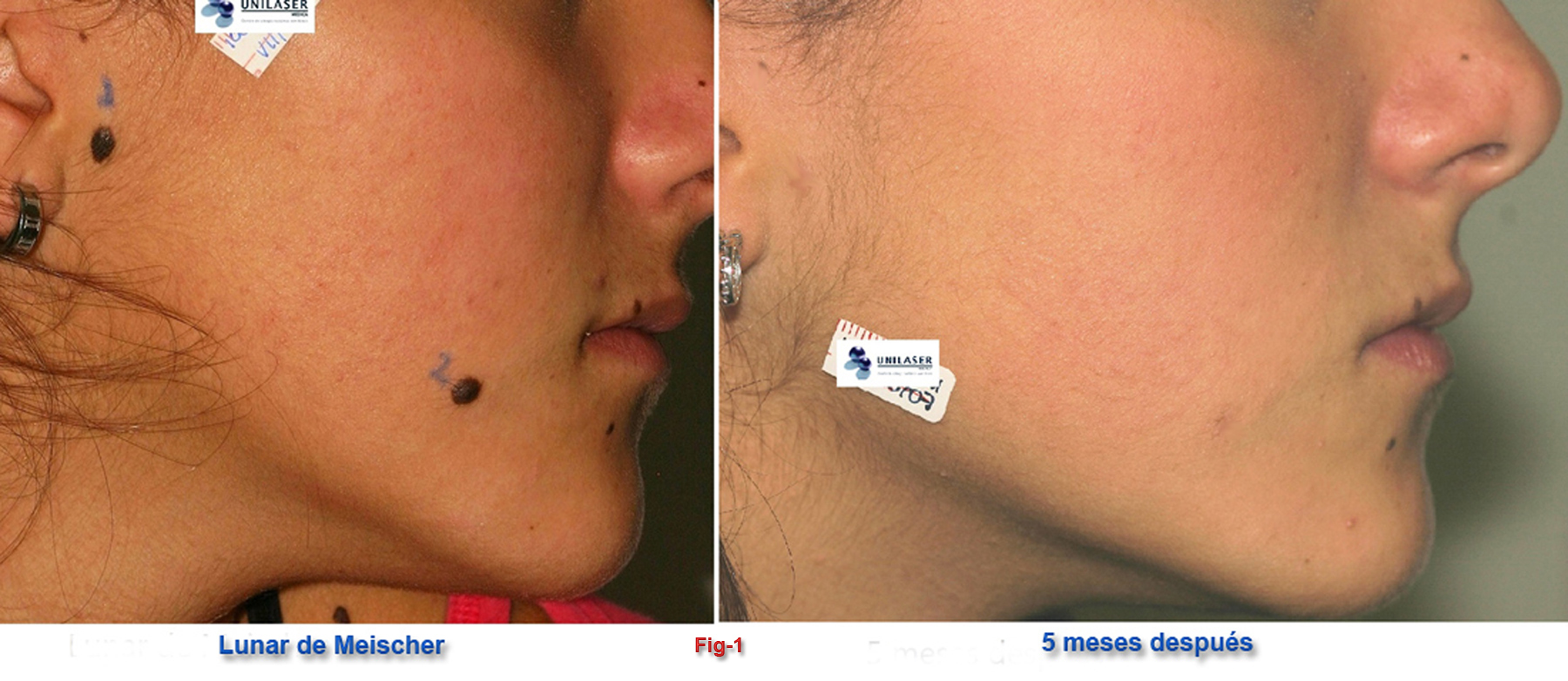 Los lunares planos marrón claro y oscuro son por regla general, superficiales. Los de color azul son profundos y no se pueden cauterizar. En la cara, ver por favor arriba Fig-1, la mayoría de los lunares crecen dentro de la dermis superficial y media. Cuando el lunar tiene pelos gruesos se debe complementar la cauterización de lunares con la depilación eléctrica o con láser. Si lo desea puede ampliar la información aquí: https://unilasermedica.com/cauterizacion-de-lunares/